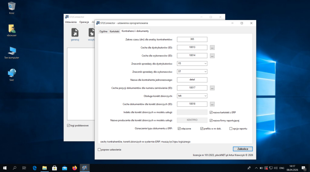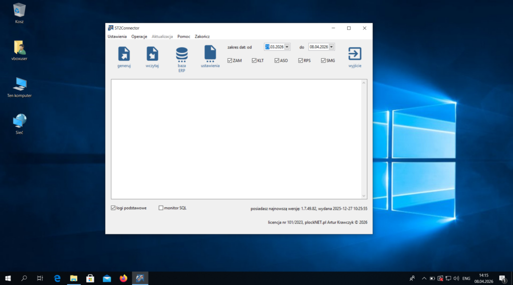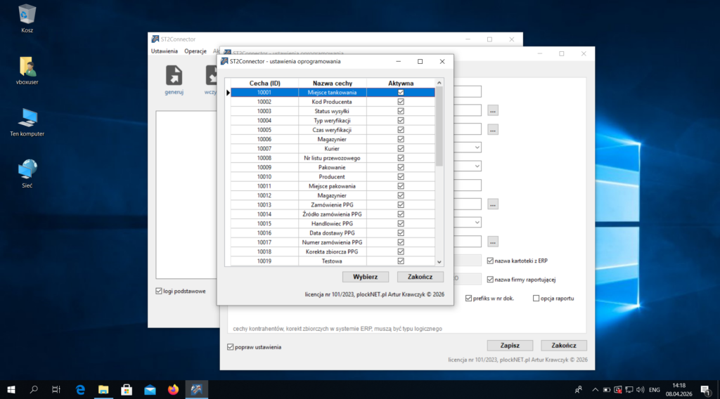 Funkcjonalności oprogramowania interfejsowego ST2Connector: