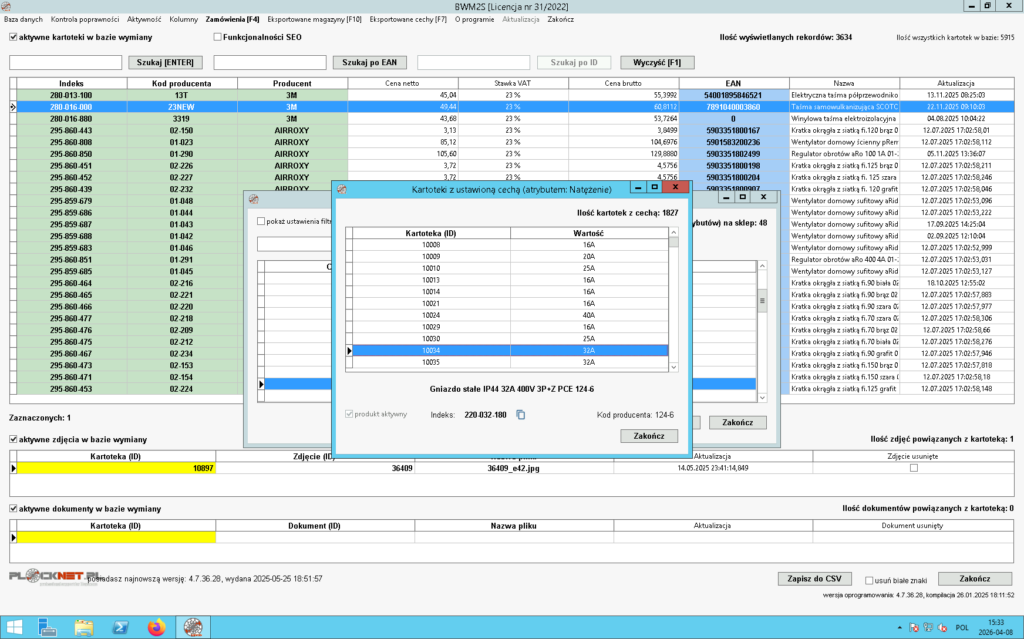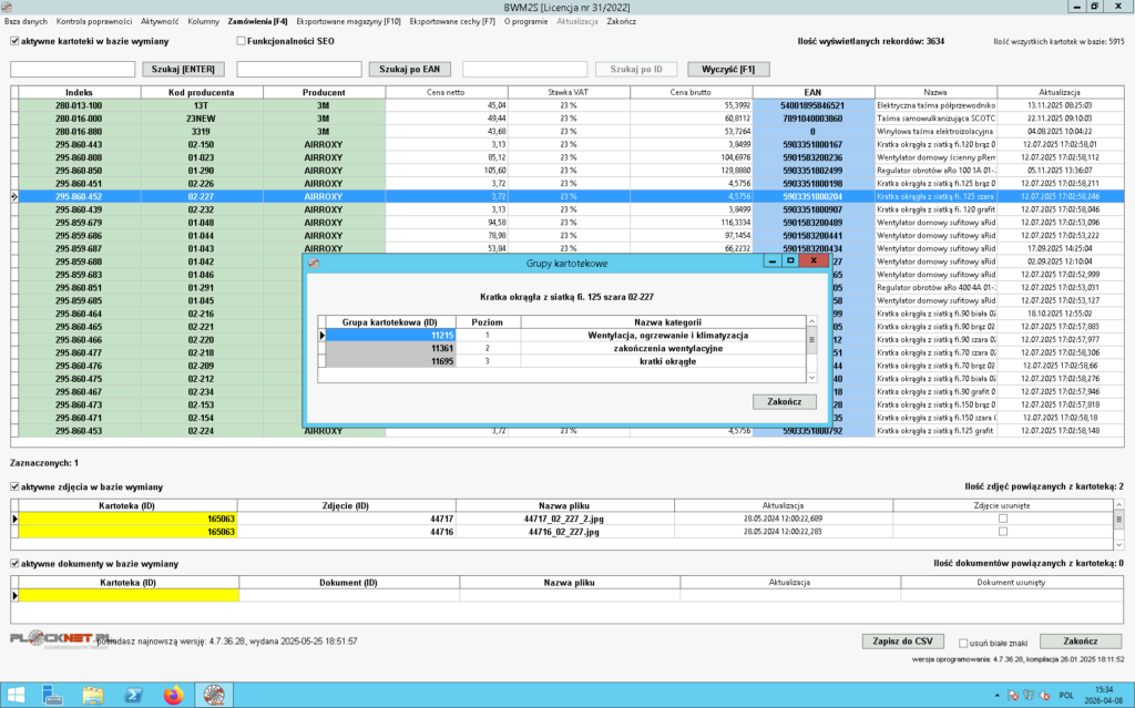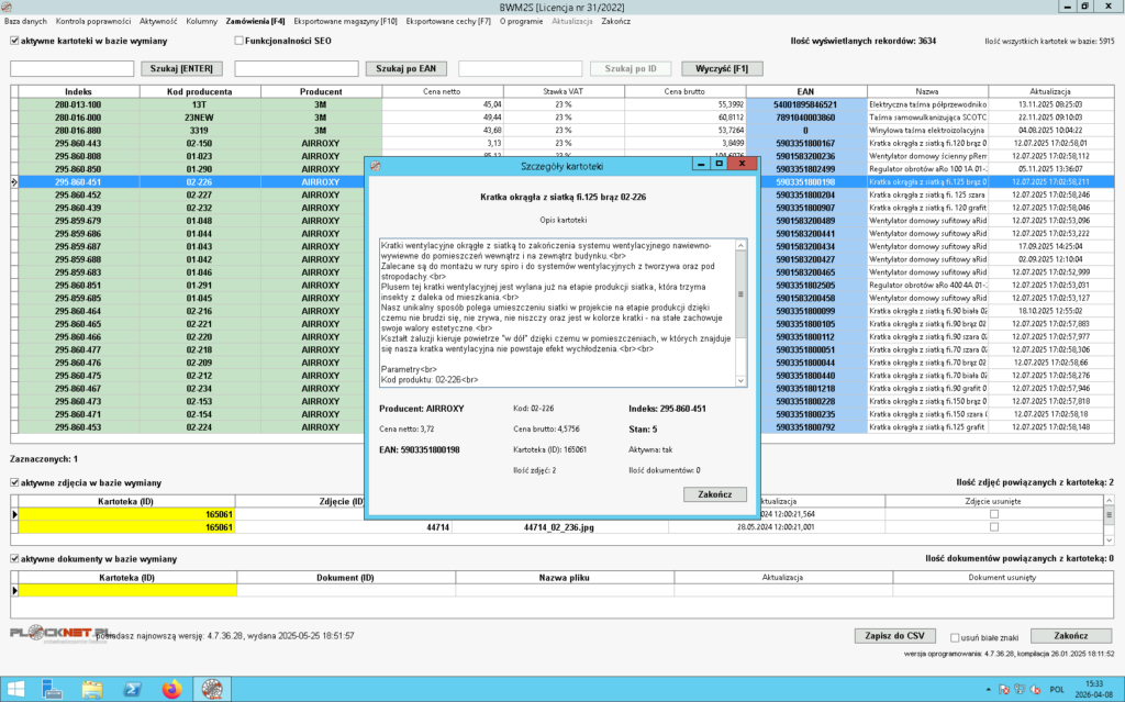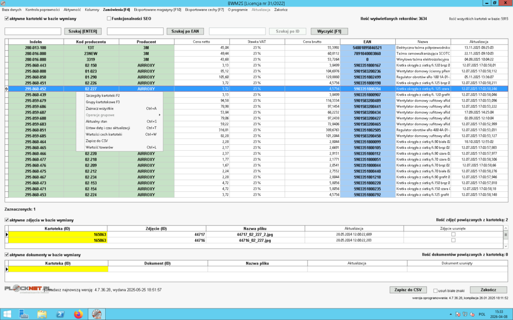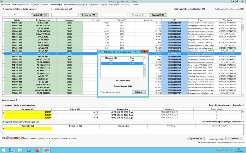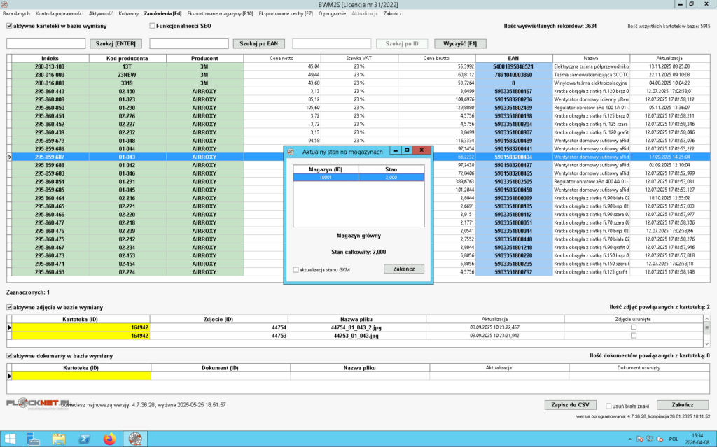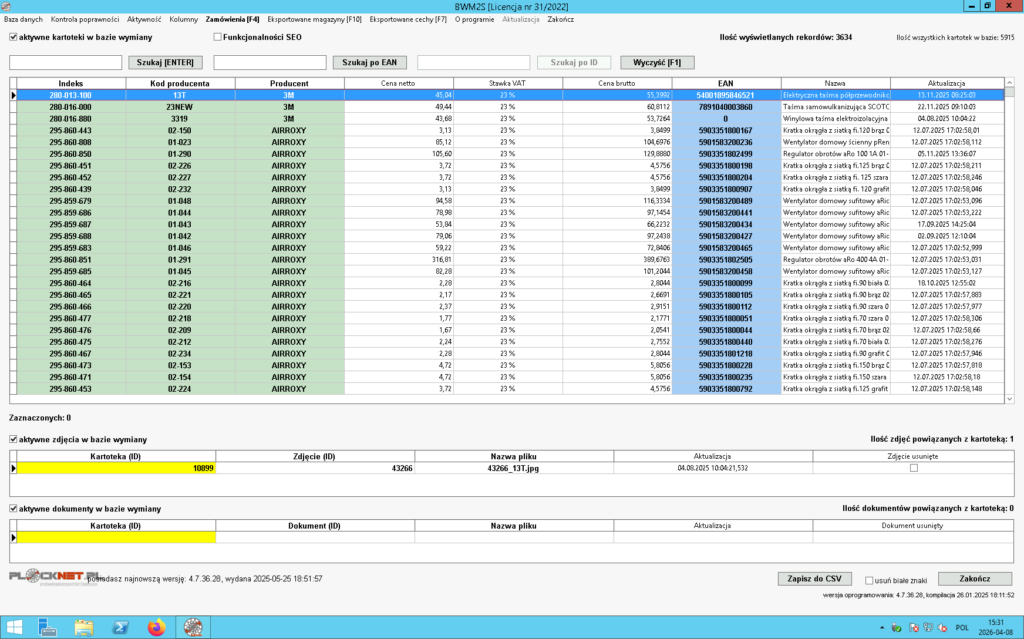 - poprawności kodu EAN przypisanego do kartoteki,