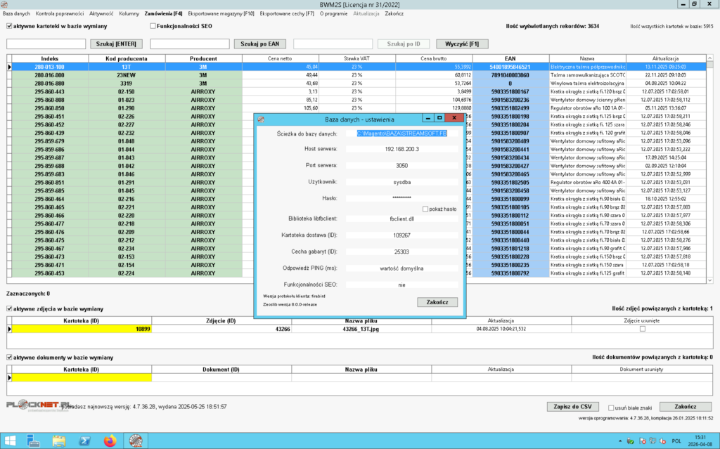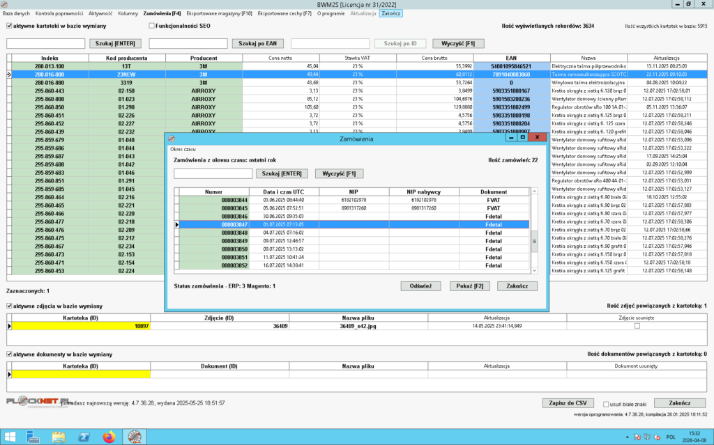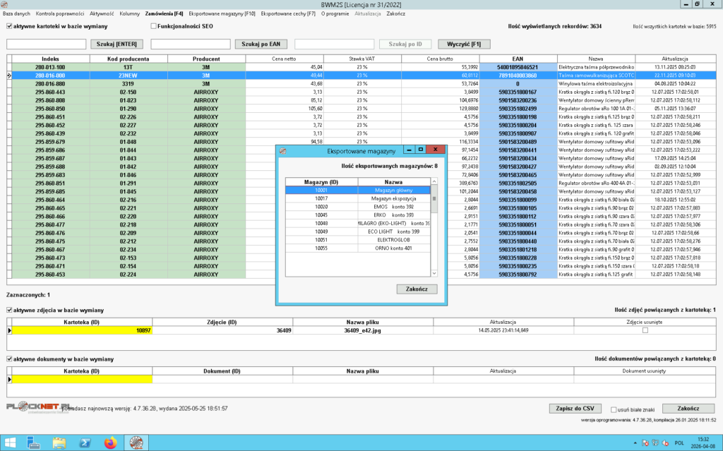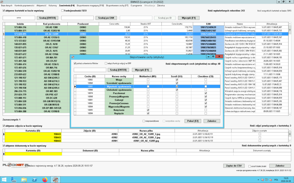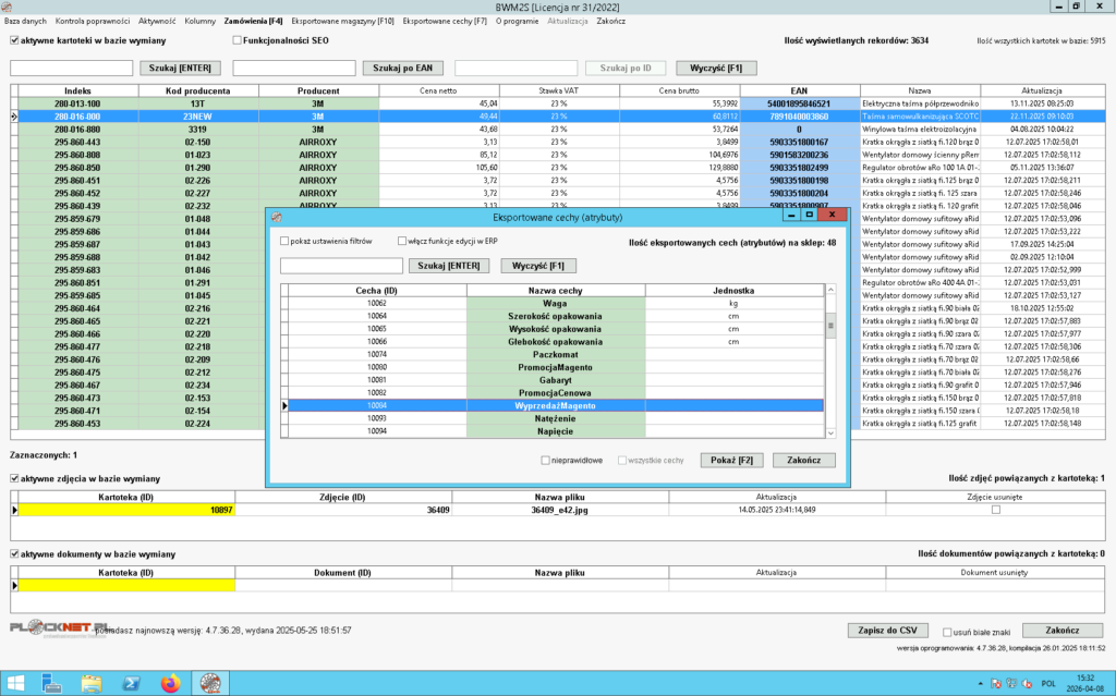 Oprogramowanie pozwala sprawdzić oraz przeprowadzić kontrolę poprawności eksportowanych do sklepu Magento 2 następujących danych znajdujących się w bazie wymiany: