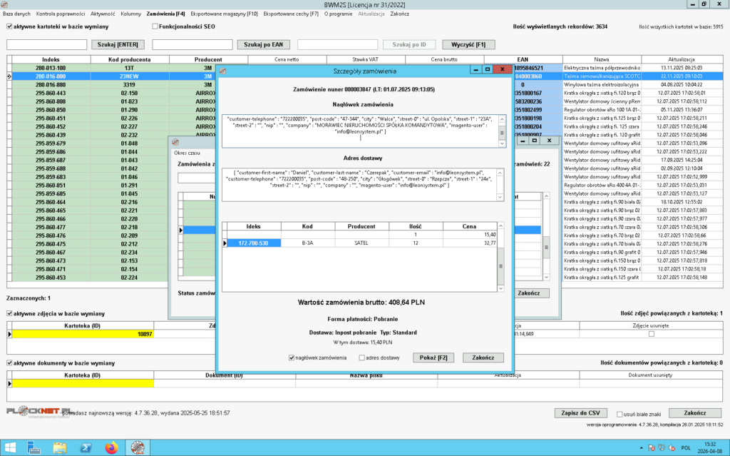 Interfejs BWM2S, pozwala ponadto sprawdzić poprawność importowanych do oprogramowania ERP zamówień pochodzących ze sklepu internetowego. W ostatniej wersji dodano możliwość edycji pola JSON z zamówieniem (danych bilingowych, jak również danych dostawy), w przypadku wystąpienia błędnych danych. Oprogramowanie pozwala na wyeksportowanie wyświetlonych rekordów do pliku CSV, w celu analizy potencjalnych błędów. BWM2S ma zaimplementowany mechanizm autoaktualizacji.